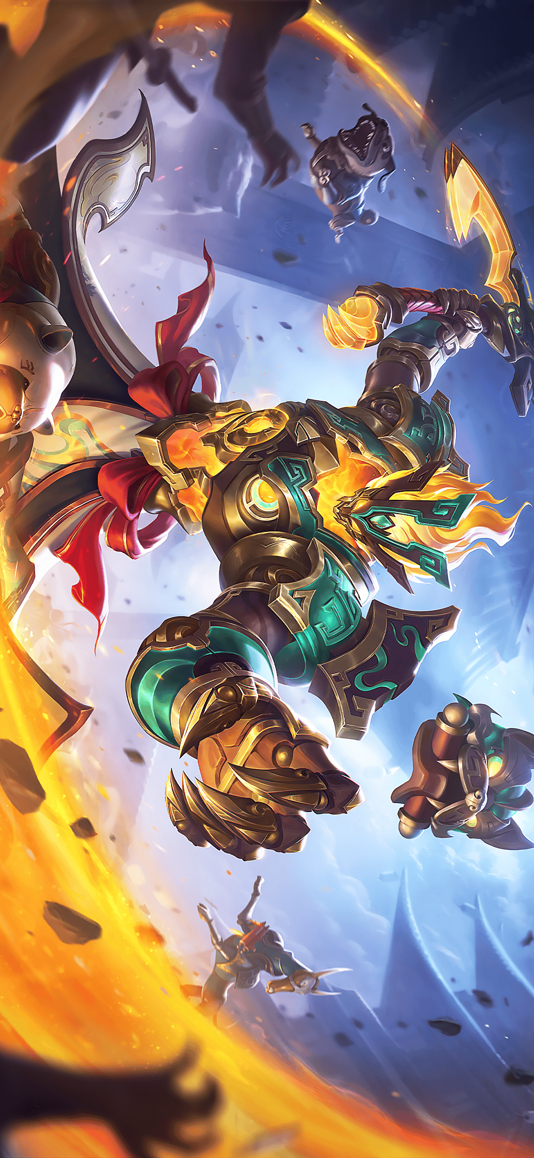 皮肤特色:以红色为主色调,盔甲华丽,图案复杂,展现出权力与力量,技能特效颜色鲜艳,以红色和金色为主,强化了技能释放时的视觉效果。