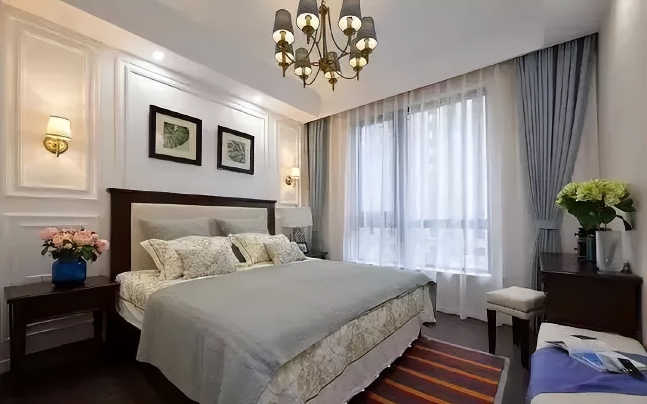 主卧营造出了淡雅清新的氛围,为我们提供了一个舒适的睡眠环境。床头那用石膏线装饰的背景,让卧室的品味提升了一个层次。花朵的装饰散发着淡淡的清香,营造出浪漫的氛围。嵌入式的百叶柜门衣柜,既好看又实用。