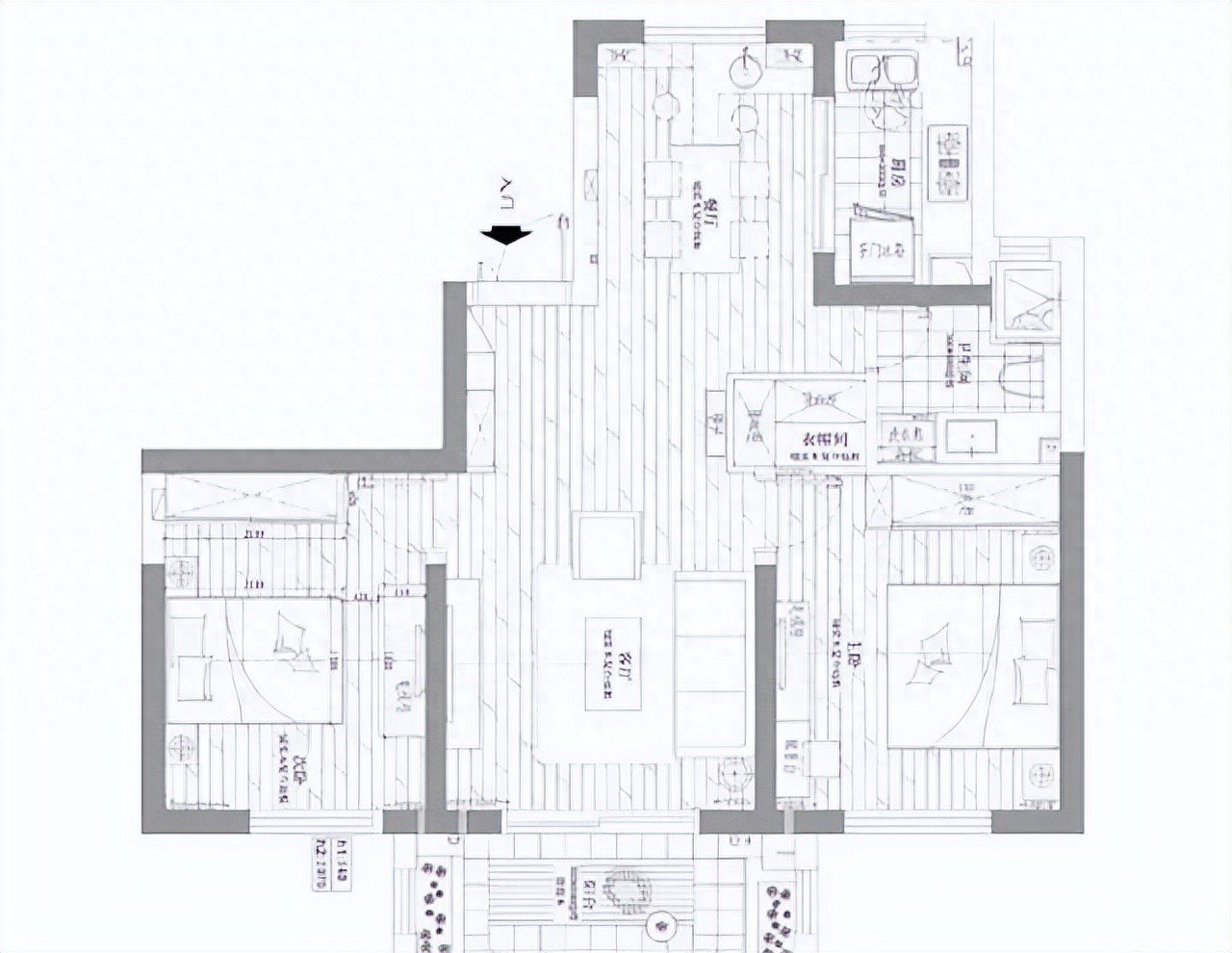 一进入玄关,那独特的鞋柜斜位就让人眼前一亮。原本按照最初的方案,单门设计会显得比较局促小气,所以和老婆商量后决定换一个更大的门。可新的问题又出现了,门太大了,进门左边是受力墙无法改动,而右边的话,鞋柜宽度又不够。经过反复讨论,最终我们决定将鞋柜做成斜面,没想到效果出奇的好,不仅美观大方,而且实用性超强,我特别喜欢。鞋柜还贴心地设计了一个卡座,方便换鞋和脱鞋,白色的鞋柜更是显得大气而典雅。