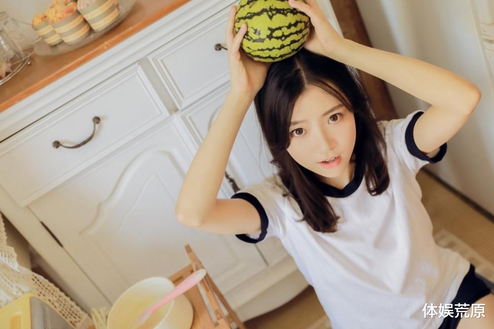 学生装居家少女,无聊到玩大西瓜,绘画看不懂