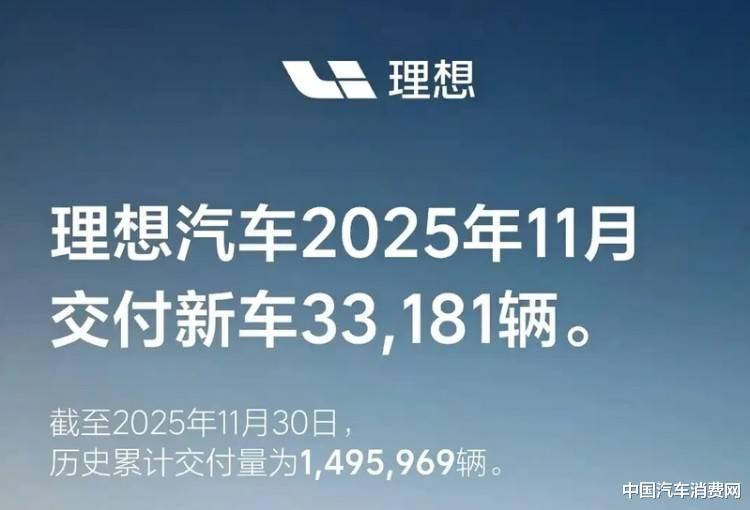 理想汽车当下已经跌出头部新势力阵营,其11月交付量33181辆,历史累计交付量达到1495969辆。在众多新品的蚕食下,此前风光无限的理想L系列销量全面下滑,好在今年推出的纯电i系列渐入佳境,理想i6和理想i8两款纯电SUV累计订单已经突破10万辆,后续有望进一步释放销量。