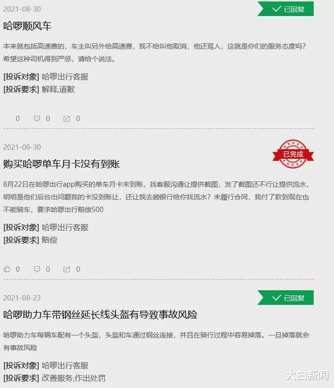 大白新闻注意到,通过“积极整改”“取得成效”的哈啰,也有不少公开投诉。