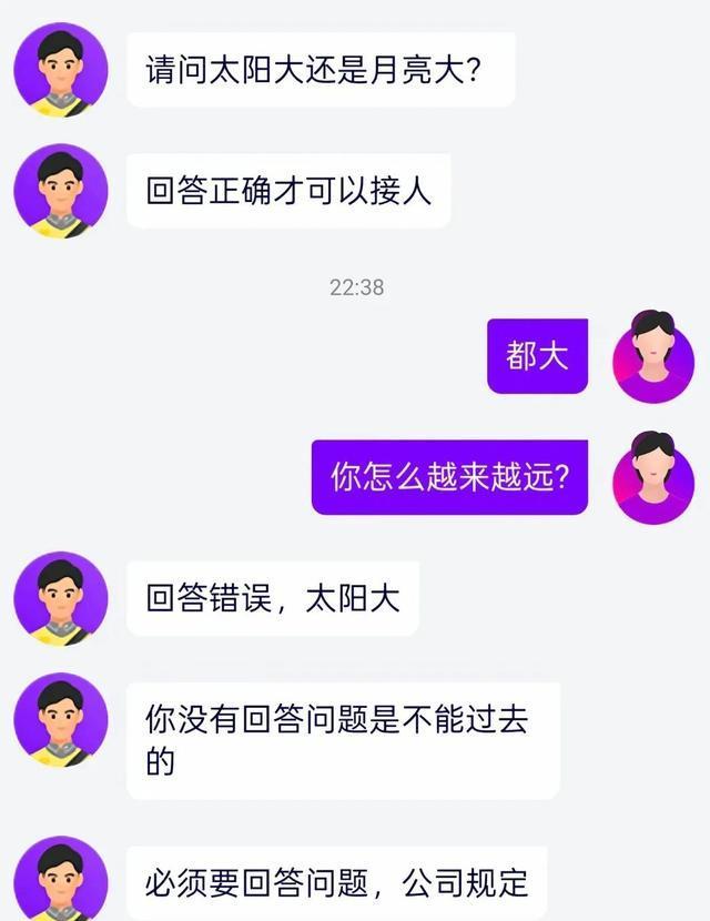 就出现了“太阳大还是月亮大”这种无厘头拒载的方式。司机大哥们也是没办法,想通过这种方式把低价单给“过滤”掉。