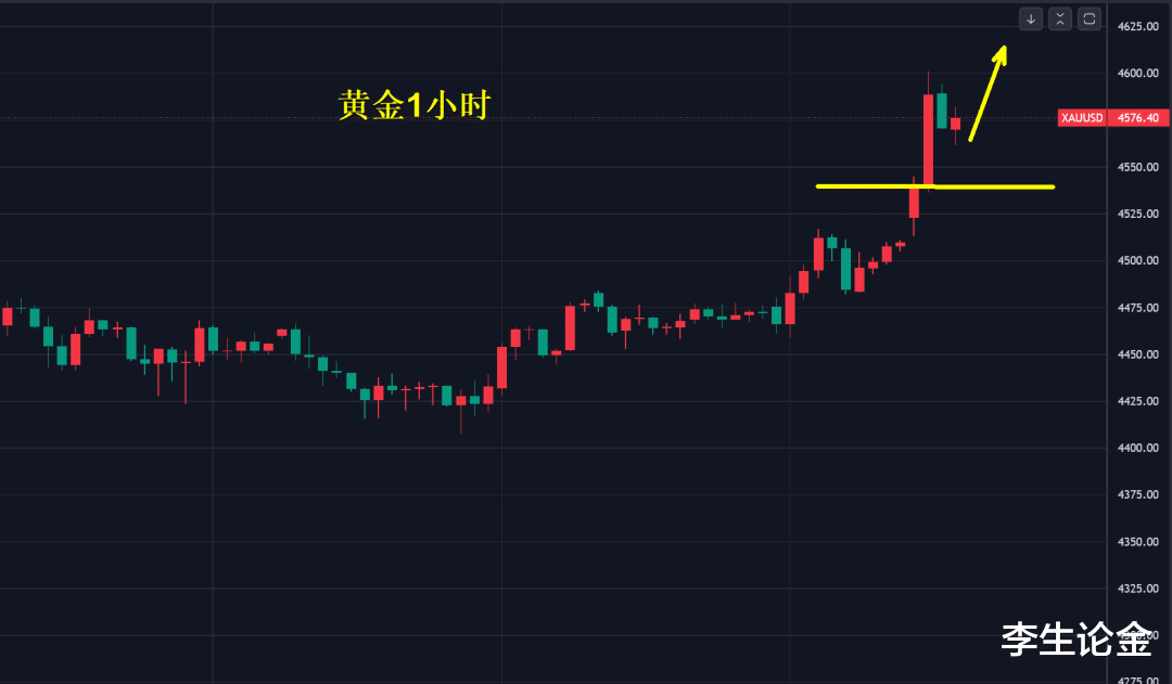 前期4550美元高点一丝阻挡都没有,直接被秒杀。现在是手里有黄金和没黄金的都慌了,有人怕彻底踏空,也有人怕多头最后的疯狂。上周五美国非农就业数据好坏参半,就业率利多,而失业率却在下降,至于数据的真实性早都不得要,关键思考数据为谁服务?为了配合美联储降息节奏,就业数据不能太烂,否则反对的声音太强,无法推进货币宽松的政策。政策的落地需要其合理性,通胀保持底位,就业市场韧性足,反对声音少,经济下行才能刹住车。地缘风险只是“加油站”点的一把火,而货币政策的方向才是真正的“油罐车”,点火只需一根火柴,共识和情绪主导下不计成本涌入黄金市场。过去一个月,芝商所连续调高保证金,试图给狂热的多头情绪“降温”,权重调整和提高保证金成了多头离场前最后狂欢的理由。没人能劝住群体涌入的局面,谁敢说黄金有风险,谁要说现在买是高位,那就是散户眼里“最大的风险”,挡着别人捡钱就是“恶”。我只想奉劝:当你失去理性去捡钱的时候,别忘了潮水终将退去,没有任何一个牛市可以成就所有人,给自己买好“系统性”回时的票。说一下今天黄金行情:早间金价再次跳空高开,延续上周一跳空的节奏今天冲击4600美元,没有回补更没有修正,一路北上屡创新高,短短几个小时就涨了100多美金,也算是刷新认知了。现在黄金4600美元白银84美元成了新记录,下一站能涨到多少,还有多大的空间,没有人能说清楚,经验主义早都瓦解,本本主义也不复存在,所有人进入一个未知的世界,也都在历史当中抒写历史。