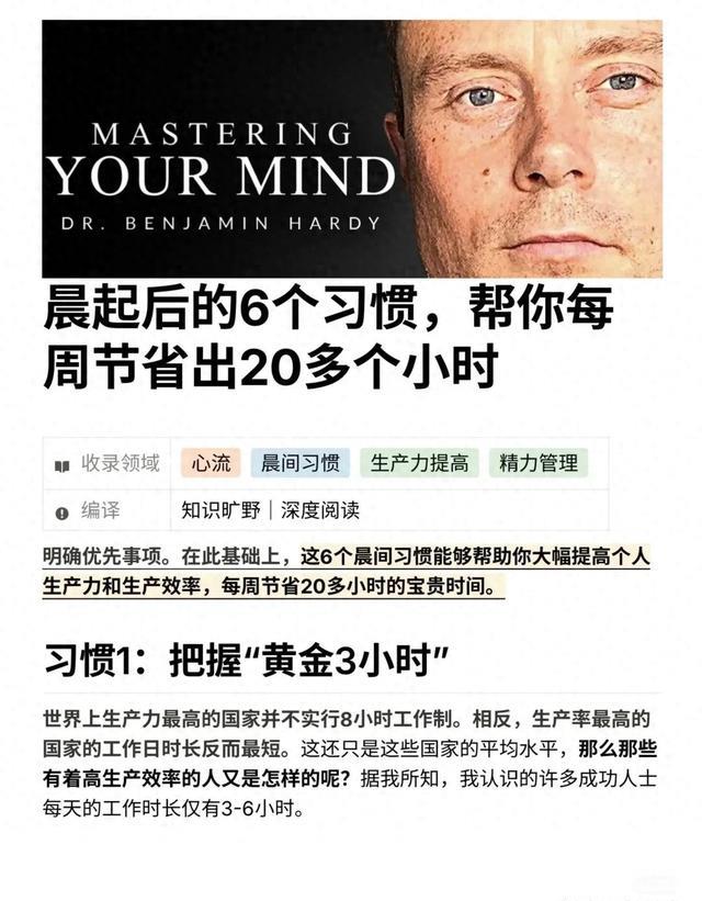 在快节奏的现代生活中,时间愈发显得珍贵如金,总感觉不够用,仿佛被一只无形的手拉扯着,在忙碌与疲惫中穿梭。然而,你或许未曾意识到,每天晨起后的这段时光,犹如一座潜藏的宝藏,如果巧妙利用,通过养成 6 个简单却高效的习惯,竟能帮你每周凭空 “挤出” 20 多个小时,让你的生活焕然一新,轻松掌控节奏,从容应对一切挑战。