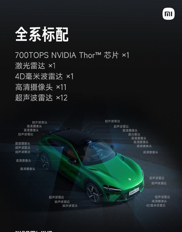 800V碳化硅高压平台、V6s Plus 小米超级电机、连续阻尼可变减振器、四活塞固定卡钳、小米天际屏全景显示、小米澎湃OS骁龙8 Gen3、小米端到端辅助驾驶、NVIDIA Thor™ 700TOPS、激光雷达……这配置,简直就是“武装到牙齿”啊!