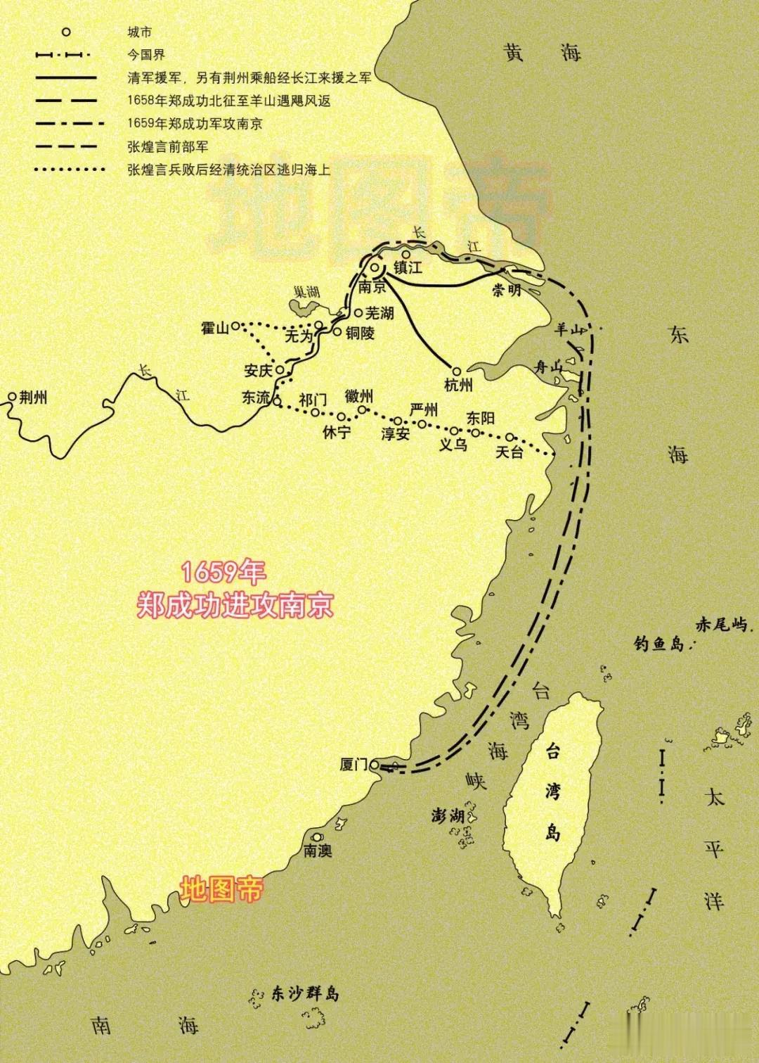 1659年(清世祖顺治十六年、南明昭宗永历十三年)五月,郑成功再率十万大军北伐,会同张煌言部进入长江,势如破竹,接连取得丁海关、瓜州、镇江等战役的胜利,张煌言部亦取芜湖一带十余府县,一时江南震动。不过郑成功攻南京、崇明皆不克,失去潘庚锺和甘辉等得力将领,只得退回厦门。