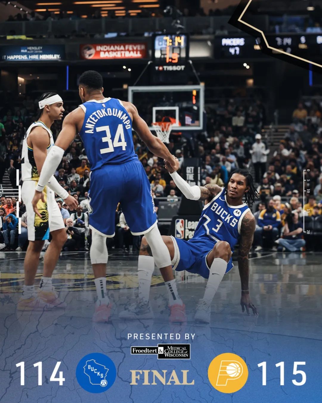 坤坤率领的鹿群在客场和步行者周旋到了最后一秒才由哈利伯顿的神来之笔定出胜负。