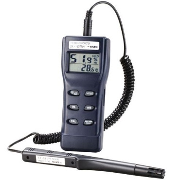 一、核心技术参数 ⚙️参数详细规格测量范围温度:0.0~50.0℃湿度:10.0~95.0% RH湿球温度:-13.4~59.9℃(演算值)显示范围温度:-12.0~62.0℃湿度:0~100% RH湿球温度:-13.4~59.9℃测量精度温度:±0.6℃(at 10~50℃)湿度:±3% RH (at 10~40℃)湿度:±5% RH (其他温度范围)分辨率温度:0.1℃湿度:0.1% RH湿球温度:0.1℃响应时间温度:约 10 秒 (90% 响应)湿度:约 30 秒 (90% 响应,25℃环境下)电源1 个 9V 碱性电池 (6LR61),连续使用约 200 小时尺寸主机:约 (W) 70×(H) 150×(D) 30mm传感器:约 (W) 20×(H) 100mm重量主机 + 传感器 + 线缆:约 180g (含电池)传感器线缆卷曲式,最长可延伸至约 1.5m,方便远距离测量自动关机无操作约 10 分钟后自动关机,节省电量二、外观设计与组件构成 📱组件外观描述功能主机灰色 / 白色外壳,大尺寸 LCD 显示屏,3 个操作按键 (电源、模式切换、记忆功能)显示测量数据,控制设备功能传感器探头白色塑料外壳,内置高精度温湿度传感器采集环境温湿度数据卷曲线缆黑色弹性卷曲线,连接主机与传感器灵活调整测量位置,便于收纳电池仓主机背面,带卡扣式盖板安装 9V 电池,提供电源挂绳孔主机顶部方便手持或悬挂测量三、核心功能特点 ✨三参数同时显示:一键切换温度 (℃/℉可选)、湿度、湿球温度测量模式,满足多种环境监测需求