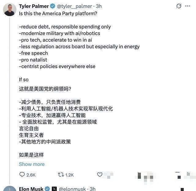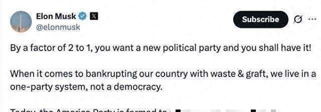 一些网友开始猜测“美国党”的政治纲领可能会包括减少国家债务开支、促进人工智能的发展以及全面放松对多个行业的监管等,马斯克对此回应表示:“确实如此!”他计划通过争取少数关键席位在国会内施加影响,以提升党的政策倡导能力。