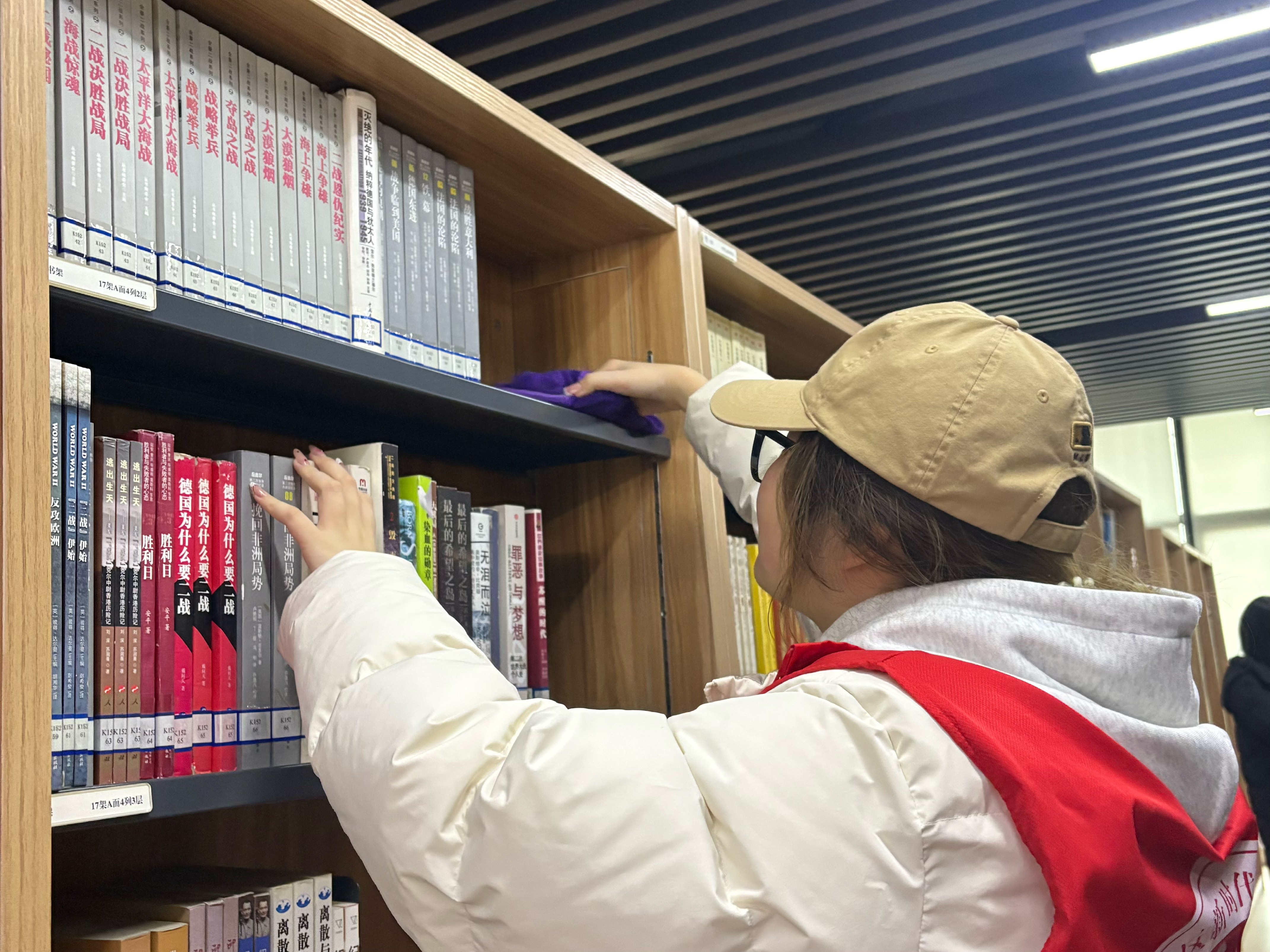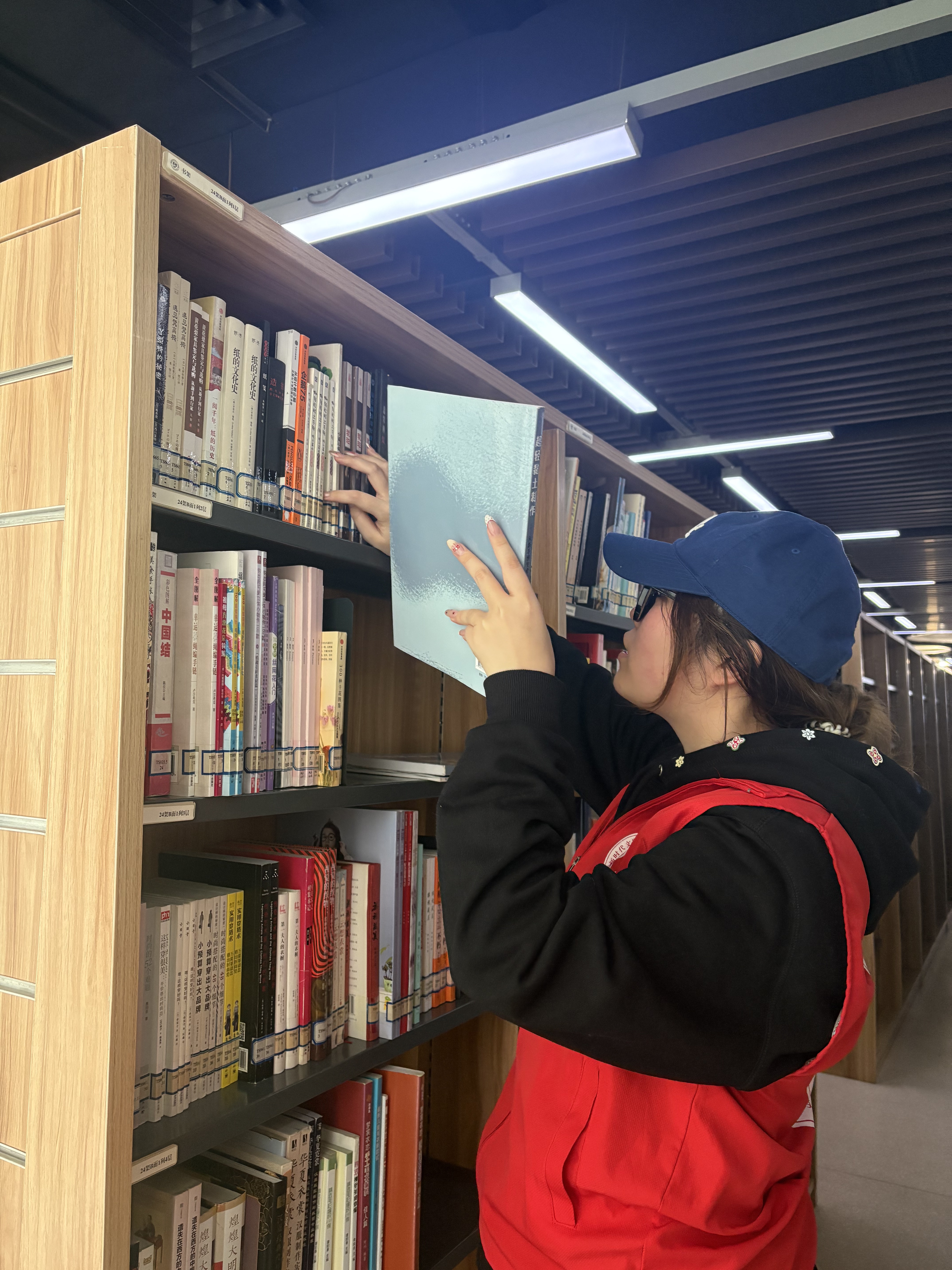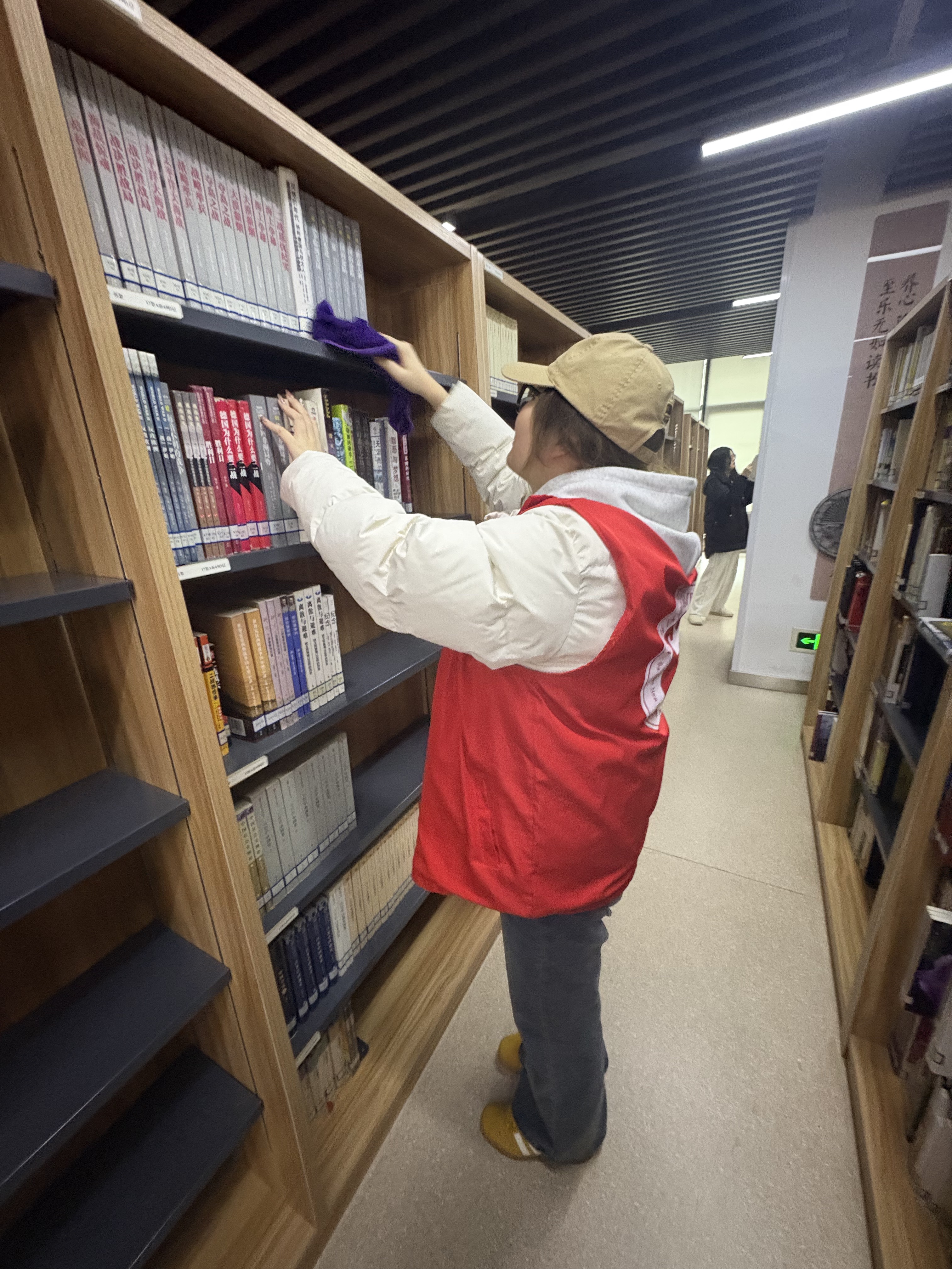 随后几日,我的工作重心转向书架日常维护与图书归位。每天清晨,我认真擦拭书架、清理灰尘,为读者营造干净整洁的阅读环境;对读者阅览后随意放置的书籍,我对照索书号逐一精准归位,深刻认识到索书号作为图书“身份凭证”的重要意义,始终以认真负责的态度坚守工作准则。在此期间,我还协助老师完成新书分类、整理与上架,当一本本图书找到专属“位置”,服务与奉献带来的成就感在心底悄然绽放。
