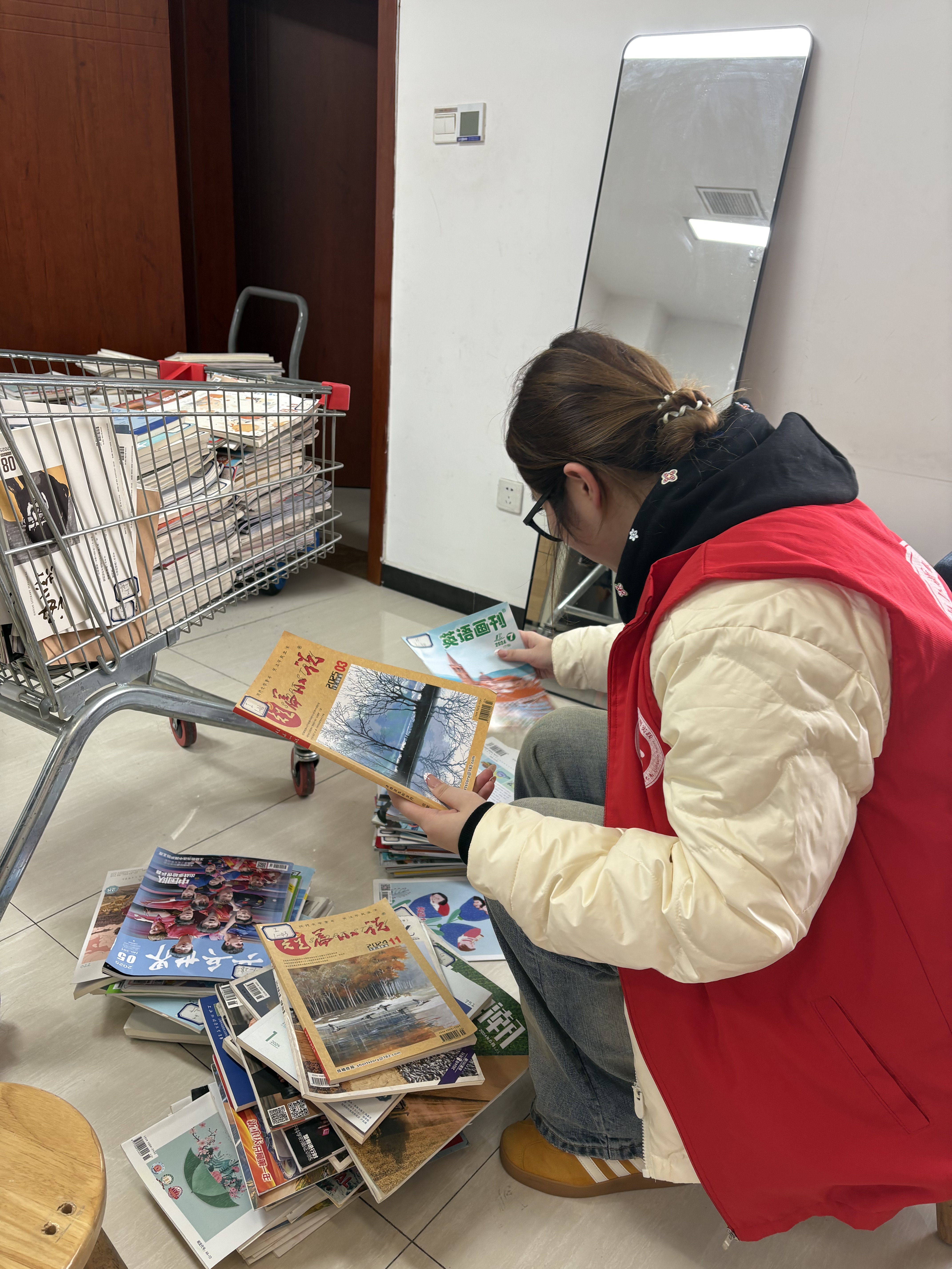 实践首日,我从杂志区整理工作起步。面对种类繁多、期数不一的期刊,我逐一核对刊名、期数与编号,细致分类、规范上架。这项工作看似琐碎平常,却考验着十足的耐心与专注力,让我真切体会到图书馆工作“于细微处见真章”的严谨态度,也在短时间内熟练掌握了图书分类的基本规则。
