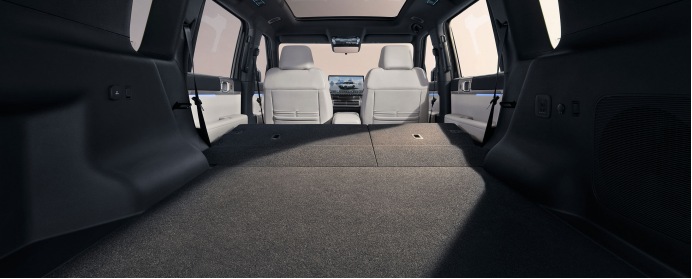 作为一款插电混中大型SUV,三段式车身,把空间利用到极致。三围尺寸4999*1995*1865mm,轴距来到了2920mm,得房率70.9%。空间组合也很自由,970L升后备箱,后排座椅放倒纯平,最大进深1879mm,1880L的超大容量,装得下诗和远方,也守得住烟火日常。