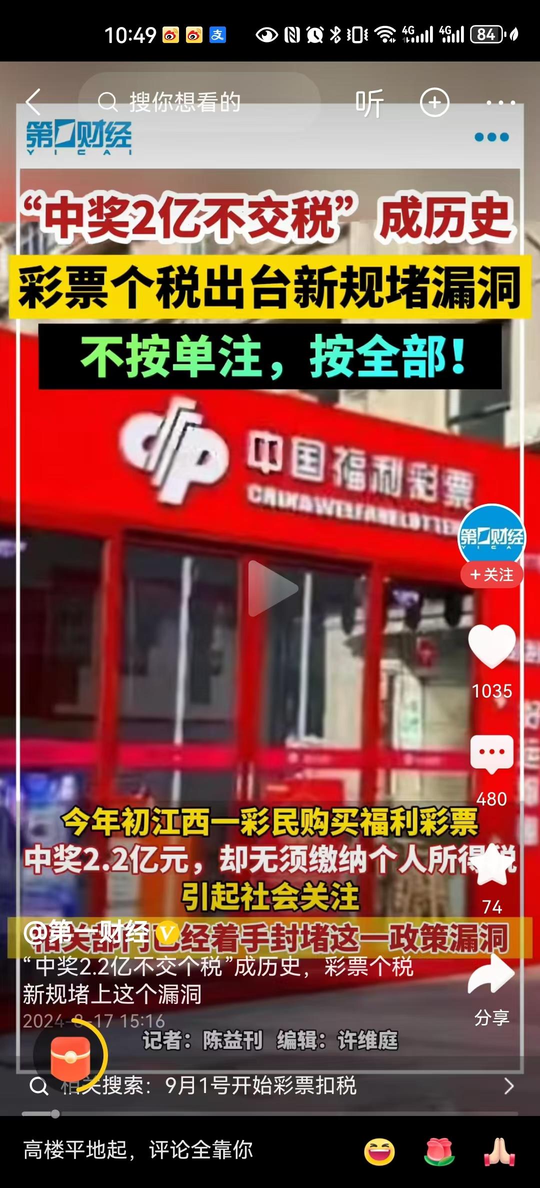 之前在2023年12月2日,江西南昌一名彩民,一次中奖2.2亿元却不用缴纳个税,引发大家的持续关注。在其中也发现了我国彩票发行中税务的可能漏洞,那就是征税的对标物是彩票,而不是中奖的人。只要单注彩票中奖金额在1万元之下,就可以免除缴纳个税。在目前各类彩票玩法多次创新的当下,原规定的漏洞尤为会被放大,而且造成社会不公平的呼吁。