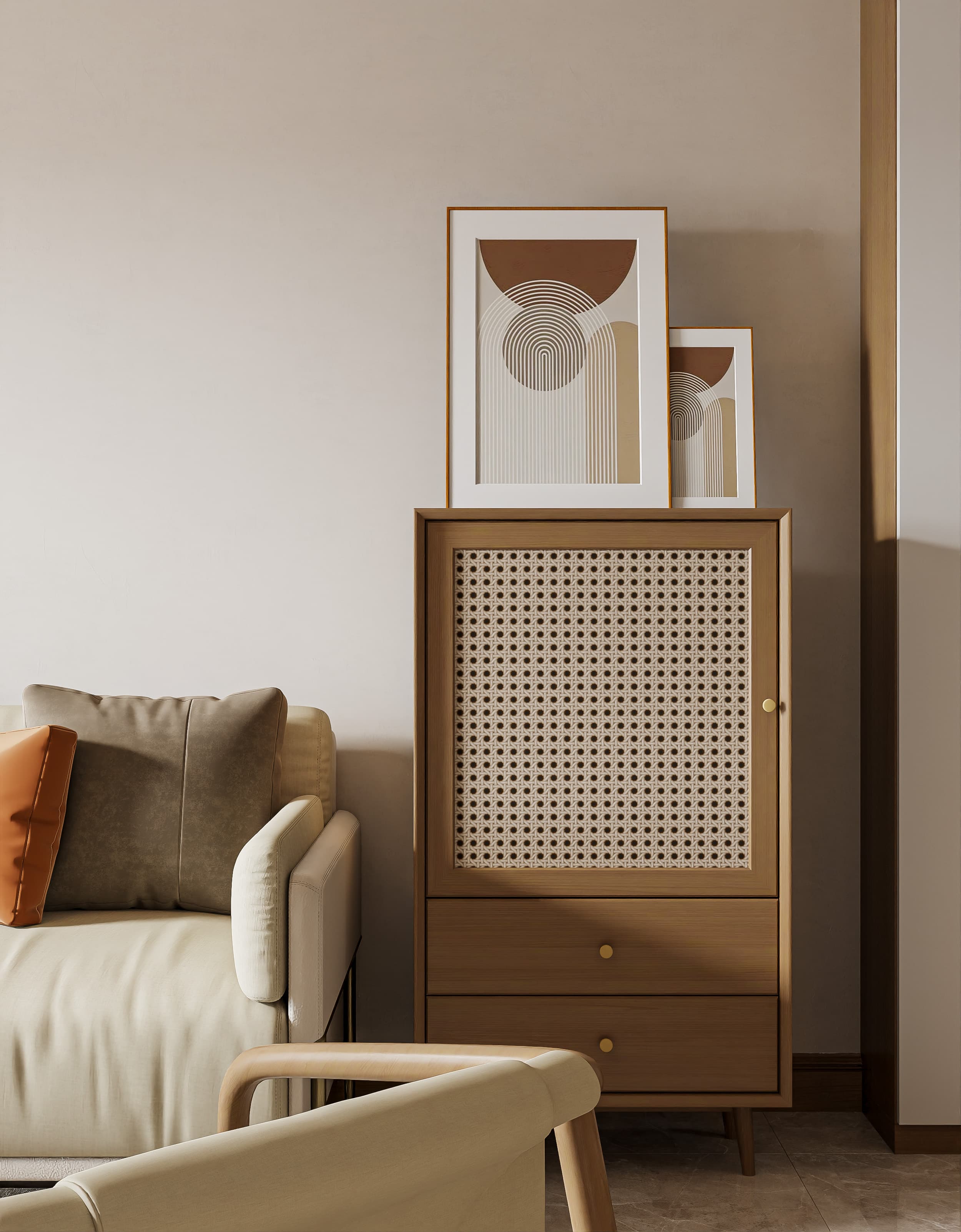 真实案例:保利大家 82㎡ 侘寂风|奶油墙+藤编家具,成片感强