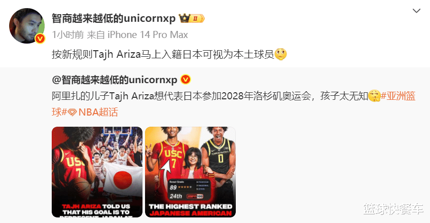 然而,菲律宾的成功,还是让亚洲诸多球队羡慕极了。这不,日本队最近几年也开始大肆归化。此前,NBA球星阿里扎之子塔基-阿里扎,他曾经表示希望能够代表日本队出战2028年洛杉矶奥运会。由于其母亲有日本血统,所以,阿里扎是具备被归化的可能性。不过,根据国际篮联最新消息,原有16岁获得护照视为本土球员规则,将修改成18岁前获得护照者,便可以被视为本土球员,不占据归化名额。