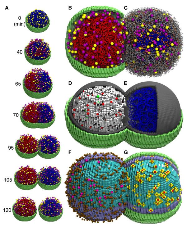 此前最有影响力的全细胞动力学模型是 2012 年的生殖支原体模型(Karr 等,Cell)和 2020 年的大肠杆菌模型(Macklin 等,Science),将细胞内部视为均匀混合体系,未纳入空间维度的影响。