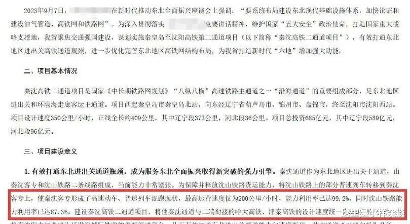 秦沈客专利用率早已超过百分之90,2024年的时候达到过99.2%,沈山普速也达到了87.3%,京沈高铁断头路解决不了,津承城际天津、河北省也无力推进,促进辽宁只能选择秦沈高铁二通道方案。
