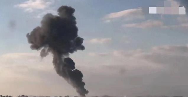 从下面的画面中看出,飞机在空中时,与鸟群撞击,机翼后面迅速喷出一团火焰。