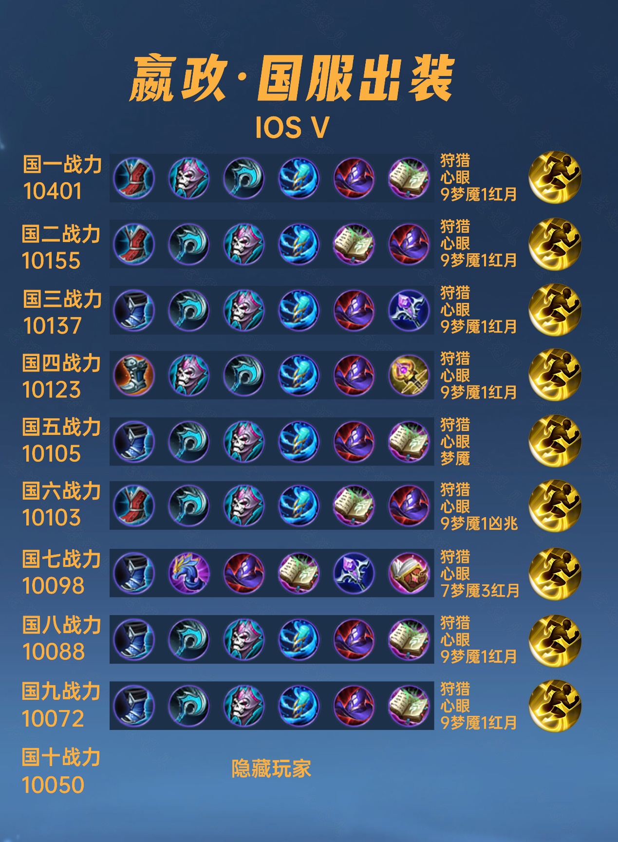 这篇文章我们来看一下40位国服嬴政的出装铭文。