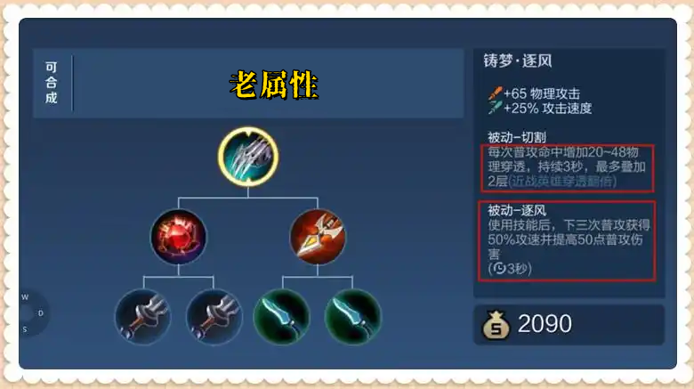 两个被动技能一个是切割(增加物穿),一个是逐风(增加攻速和普攻伤害)。