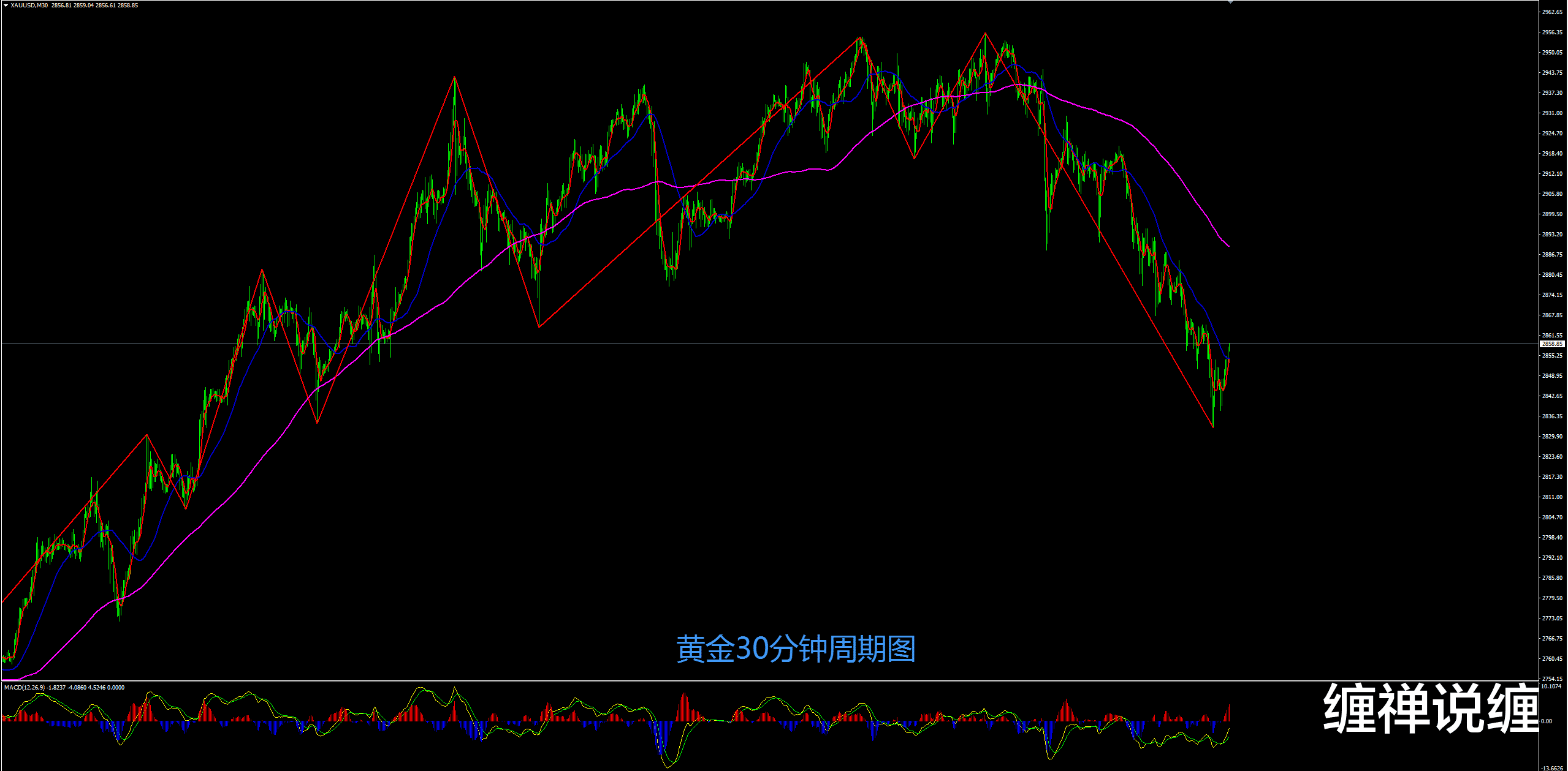 黄金30分钟现在还是在下跌中,黄金如果下周不再跌破2832,那么黄金30分钟反弹有望延续,黄金下周可能先走震荡,然后再选择方向,黄金下周反弹关注2887遇阻可以空,下方如果不破2832,那么黄金短线可以先看反弹。黄金短线可能开始震荡,下周先高抛低吸!