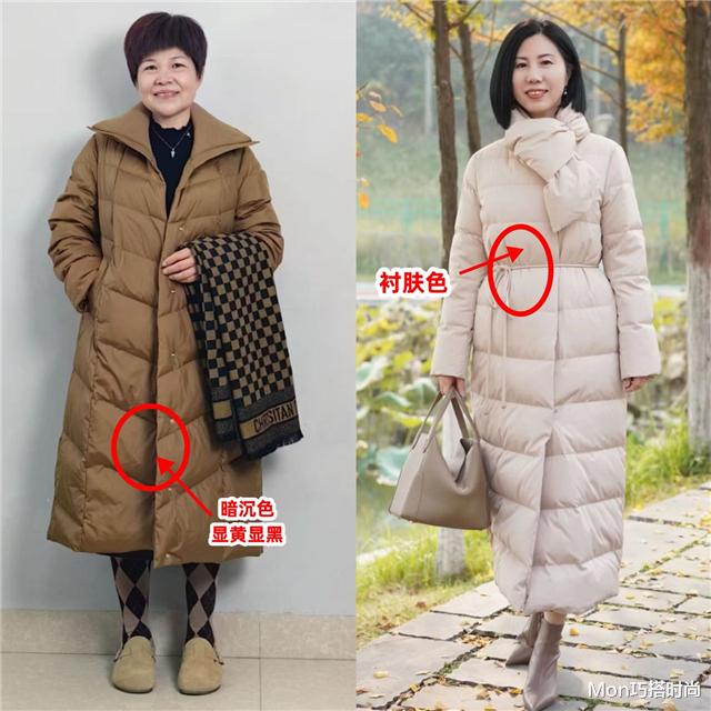 虽然说高饱和度的彩色羽绒服不好驾驭,但大家也不必一味追求黑色、深灰色等暗沉色,毕竟这种颜色的羽绒服亮度低,肤色暗沉的女人穿会显得更老气。