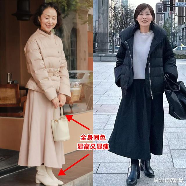 方式⑴:尝试经典色羽绒服的同色搭配,显高显瘦耐看