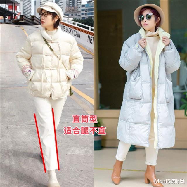 羽绒服本身带有蓬松感,搭配不对就容易显胖,所以下装一定要选利落简约的款式,比如剪裁利落的直筒裤,阔腿裤,都比那些设计繁琐的棉裤或者半身裙要更适合日常搭配,出门逛街穿也很方便。