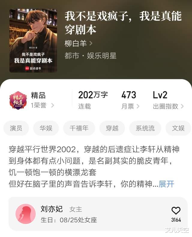 另外除了上面的两界修仙文,柳白羊的这本华娱文《我不是戏疯子,我是真能穿剧本》也完结了,看着在四千均以上精品成绩。