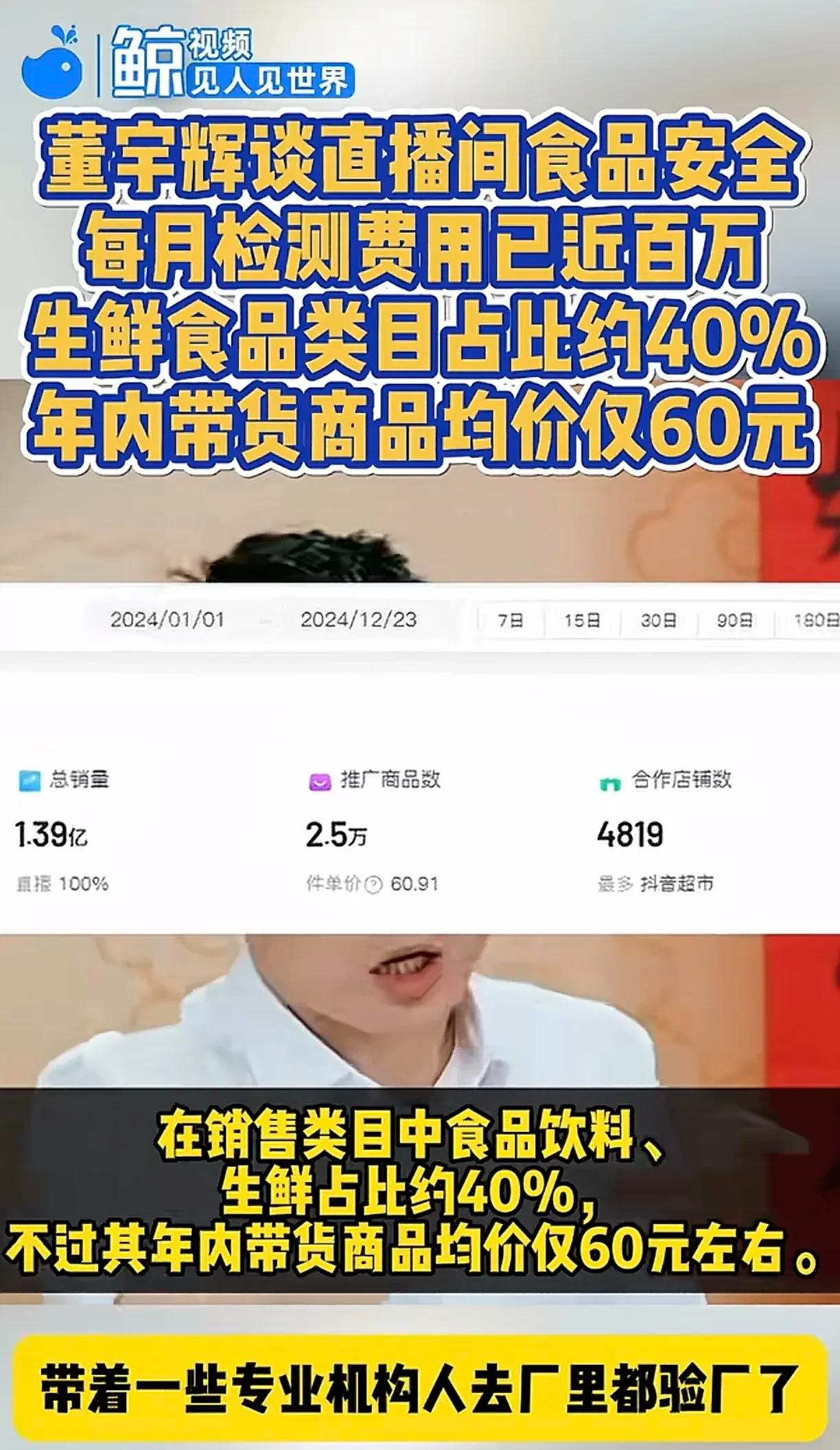 在直播中宇辉再次透露,为了确保网友买的放心,吃的放心,宇辉公司每个商品都会检测,每月只是检测费用就高达几百万,有宇辉这样的严格把关,消费者就买的更放心,大家也戏称宇辉直播间是“抖音严选”!