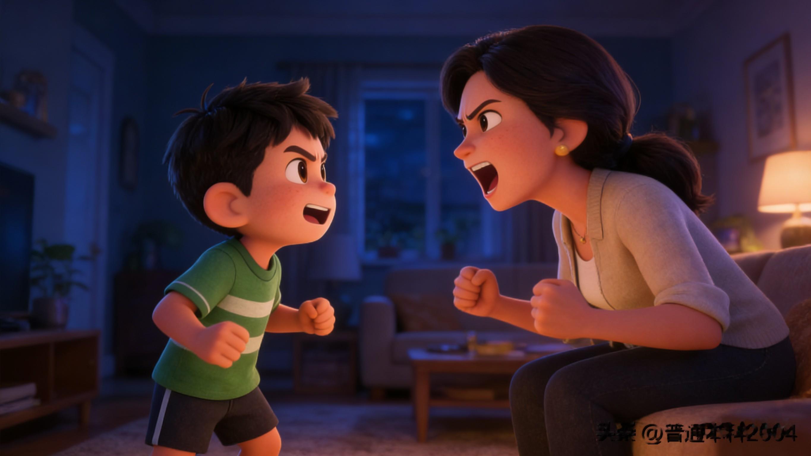晚上,小阳妈妈又和小阳表达了不想让他参加足球比赛的想法,小阳和妈妈大吵一架。