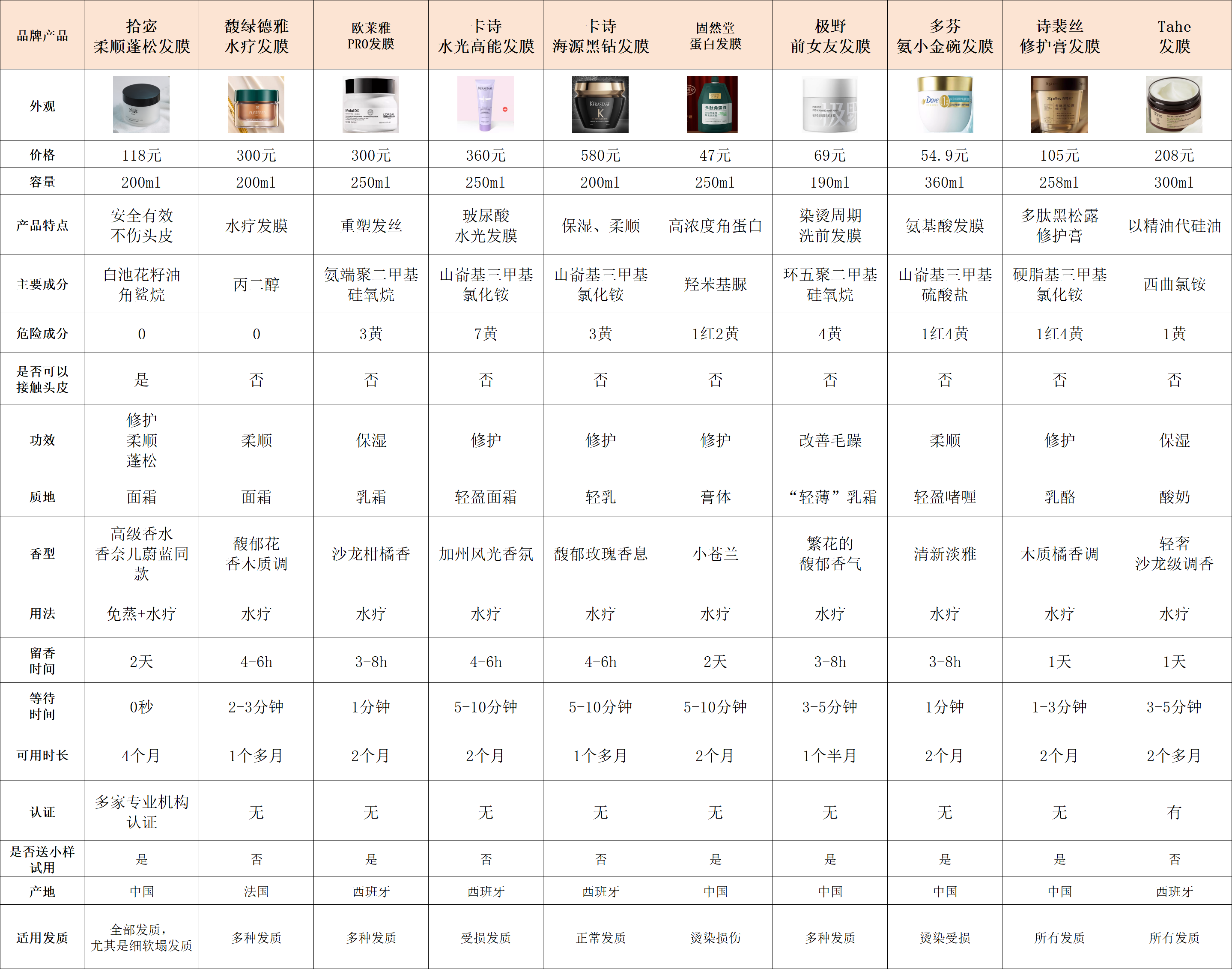 以下是我实测过的发膜品牌: