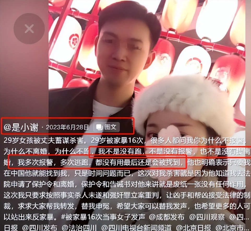 希望最后能给小谢个公平公正吧,也希望其他女性朋友们擦亮眼睛,要独立自主,不要依赖任何人来实现自己的幸福和安全。在短短两年的时间里,小谢遭遇如此多惨痛经历,她需要的不仅是同情,更是一份来自法律和社会体系实实在在的保护。而如今,我们看到警察、妇联等相关组织对家庭内部发生的暴力重视程度远远不够,这使得许多受害者无法得到及时有效帮助。