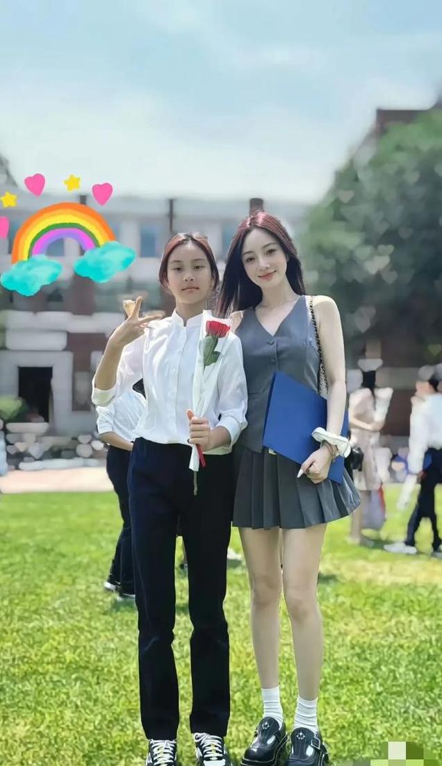女儿的小学毕业典礼上,李小璐没有缺席。当天她打扮的青春靓丽,短裙加露肩背心,在加上一头长发,我敢肯定这个造型在学校吸引了不少目光,而甜馨穿的很正式,手里拿着玫瑰花,大长腿都快赶上李小璐了,十分吸睛。