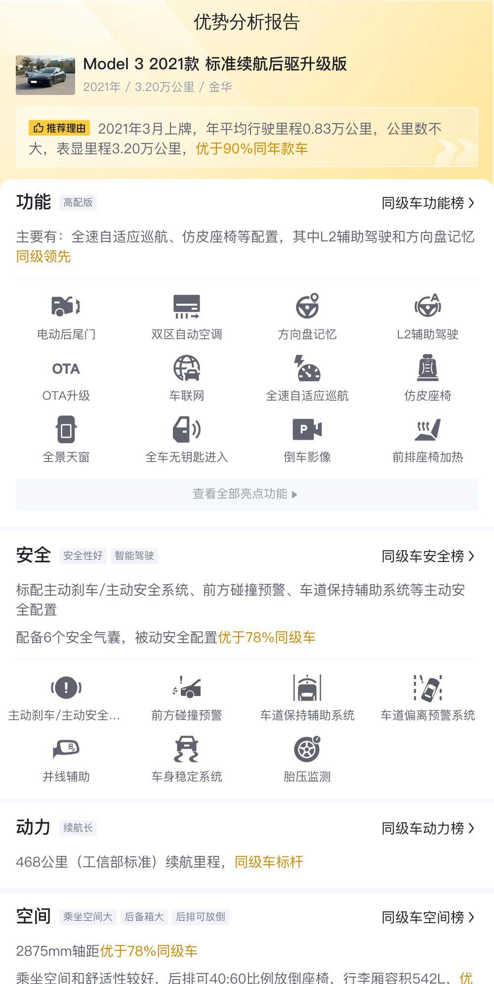 回顾一下这辆2021款特斯拉Model 3,13.6万的价格,468公里的续航,5.6秒的百公里加速,以及特斯拉的品牌力,都使其具有一定的吸引力。但最终是否值得购买,还需要根据你的个人需求、预算和对车况的评估来决定。