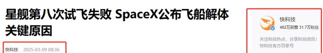 4.快科技:《星舰第八次试飞失败 SpaceX公布飞船解体关键原因》-2025-3-9