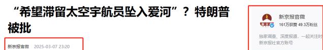 2.新京报官微:《“希望滞留太空宇航员坠入爱河”?特朗普被批》-2025-3-7