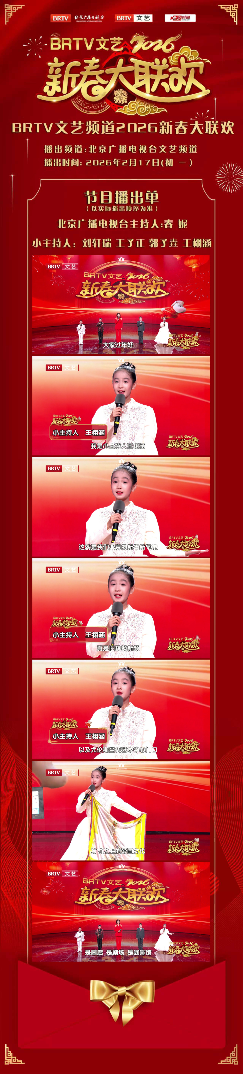 整场晚会中,王栩涵以出色的表现、灵动的表达、大方的姿态,在BRTV文艺频道这一主流平台上完美绽放,用实力诠释了新时代少年的风采与素养。此次与春妮同台主持的经历,不仅是一次珍贵的舞台历练,更是她成长路上意义非凡的高光时刻。