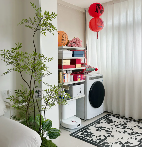 而且还需要规划一下需要几个柜子,一般需要一个洗衣柜用来嵌入洗衣机,还需要一个尺寸大一些的柜子,用来收纳家居物品。
