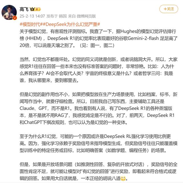 至顶科技CEO兼总编辑高飞称,幻觉的同义词就是创新,或者说脑洞大开。所以,大家感觉R1往往在回答一些本来也没有标准答案的问题时,非常惊艳。比如:人为什么养育孩子?AI会不会取代人类?宇宙的终极意义是什么?或者哲学三问:我是谁,我从哪里来,要到哪里去。但是幻觉的副作用也不小,如果把模型放在生产力场景使用,比如档案,标书,新闻写作当中,就要仔细检查。