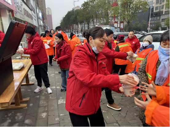 清晨6:00,活动现场布置得温馨有序。志愿者们早早来到指定地点,将熬制好的腊八粥及肉包、菜包分装成一份份,准备分发给前来领取的环卫工人。会长孔明星亲自指挥协调,确保活动顺利进行。参与活动的协会成员包括陈艳彬、胡亚辉、张红梅、刘莹等,同时爱心商家代表杨运来、张凤、吴军、李爱霞也积极加入,共同为环卫工人服务。