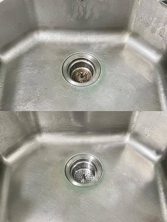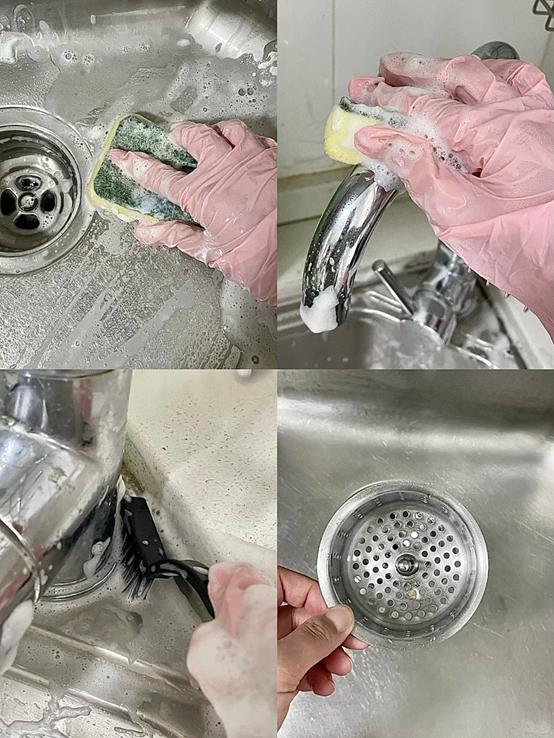 对于水槽的清洁,阿姨建议简单制作些肥皂水,倾入水槽,随后用海绵或刷子轻轻刷洗,即可轻松去除附着其上的油脂与食物残留,恢复水槽原有光泽。