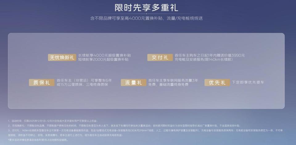 年底购车,买的是全家团圆的幸福感!银河 L6 EM-i 用超低油耗、超大空间守护每一段返乡路,限时 7.78 万起加无忧焕新礼、交付礼、质保礼、流量礼、优先礼等多项购车福利,助你在这个春节,开新车带家人轻松奔赴每一场团圆。