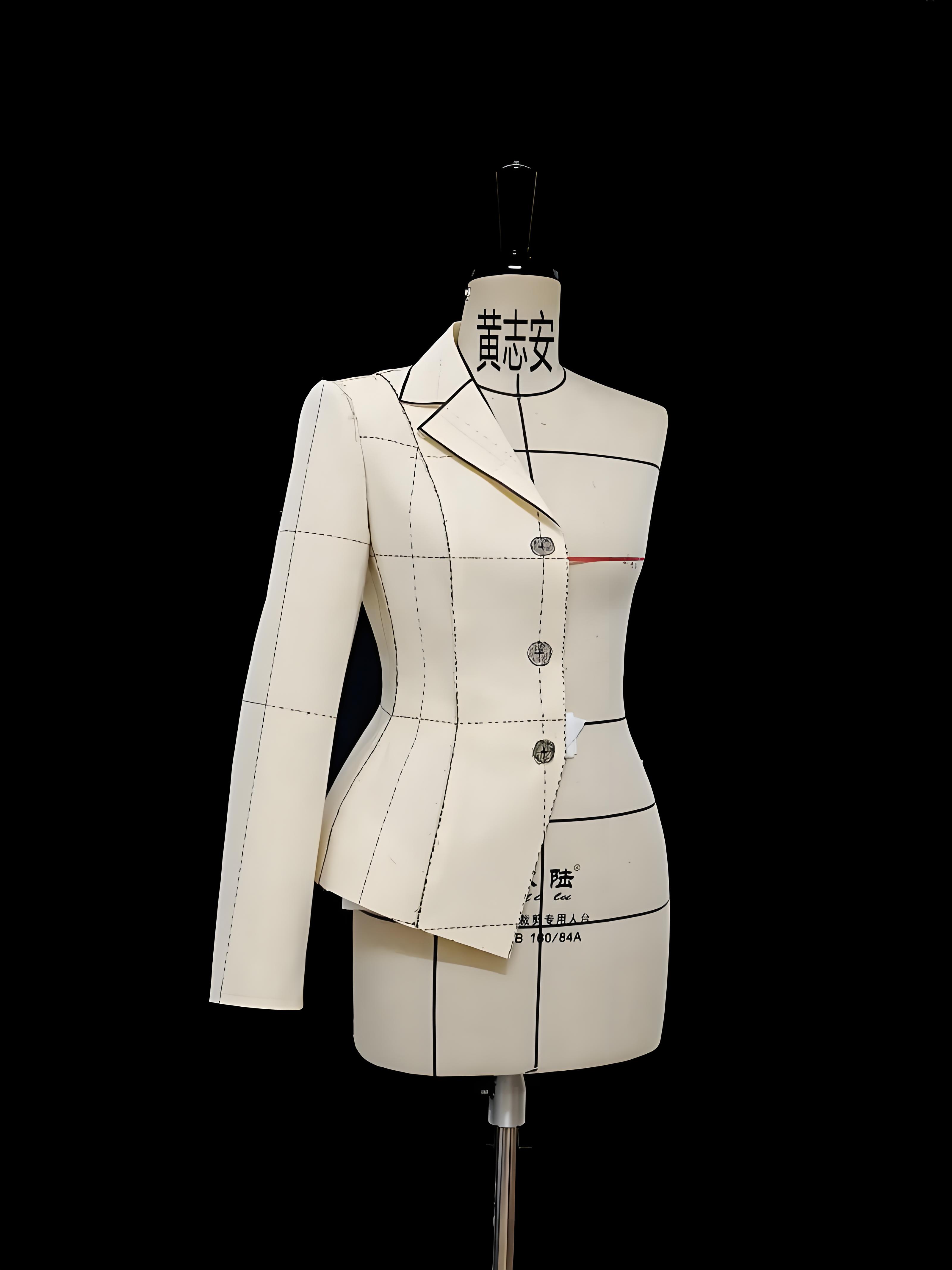 结构创新:背部悬浮式镂空、非对称重力褶皱、可变形袖管(参考Maison Margiela 2023高定) 数据佐证:Lyst报告显示,解构西装搜索量同比暴涨217% 职场突围:搭配激光切割皮革公文包,瞬间将会议室变成秀场后台