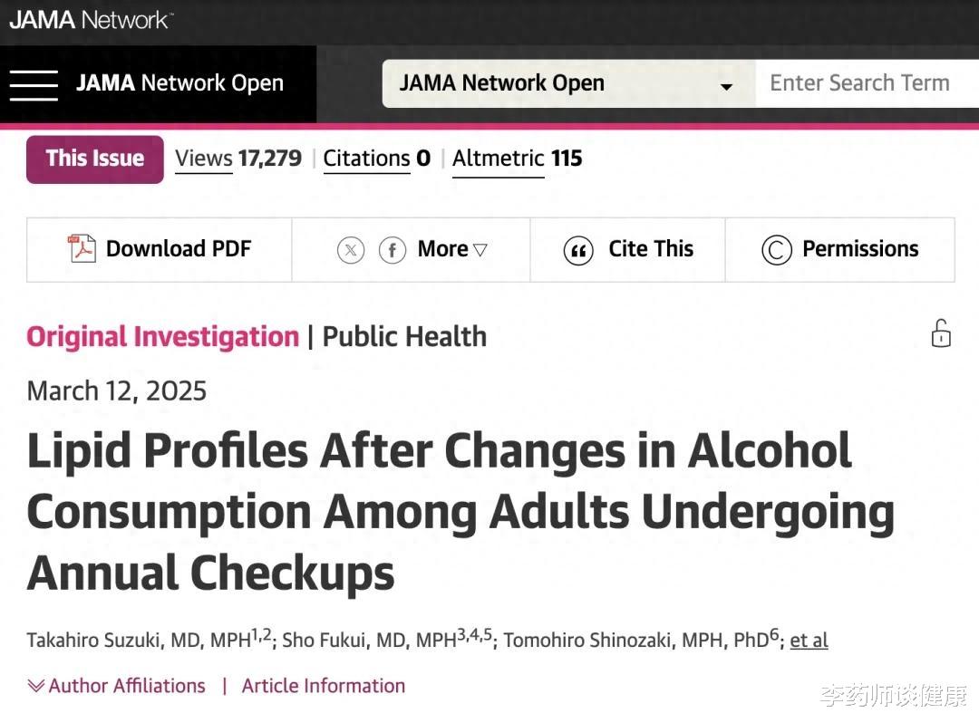 Suzuki T, Fukui S, Shinozaki T, et al. Lipid Profiles After Changes in Alcohol Consumption Among Adults Undergoing Annual Checkups. JAMA Netw Open. 2025;8(3):e250583.