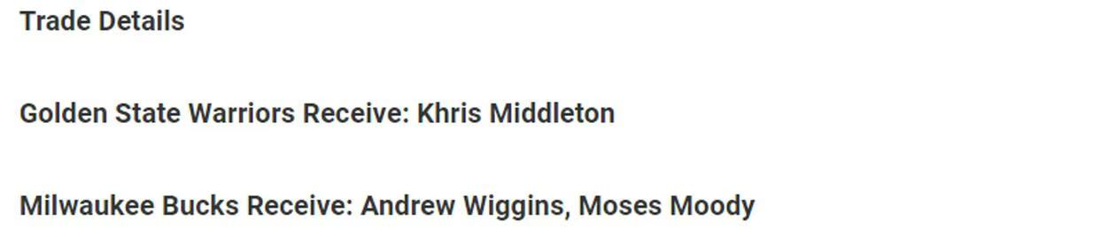 而对勇士来说,他们可以通过这笔交易找到一位合适的锋线球员填补克莱离队留下的空白。使勇士继续保持竞争力。避免上赛季在附加赛惨遭淘汰的尴尬再度重演。个人觉得两位冠军锋线维金斯和米德尔顿互换东家的交易,对于雄鹿和勇士来说是一笔各取所需的双赢交易。