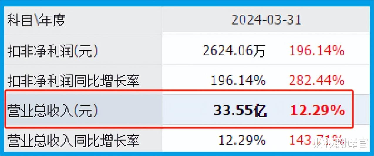 2024年第一季度,这家企业的营业总收入为33.55亿元,同比增长了12%。