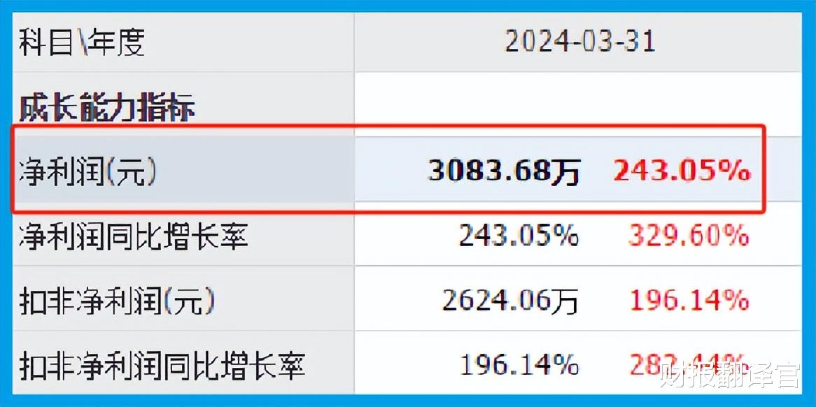 2024年第一季度,这家企业的净利润达到了3,084万元,,同比大幅增长了243%。