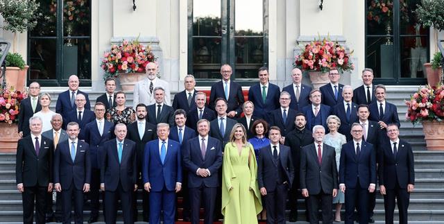 6月24日当天,泽连斯基前往海牙参加北约国家元首和政府首脑峰会,在合影时,他被安排的位置距离特朗普可不近。
